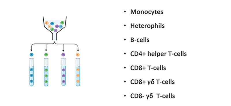 Der blev indsamlet blod og immunorganer (Cacal Tonsils og Milten) fra kyllingerne ved slagtning (35-37 dage gamle).